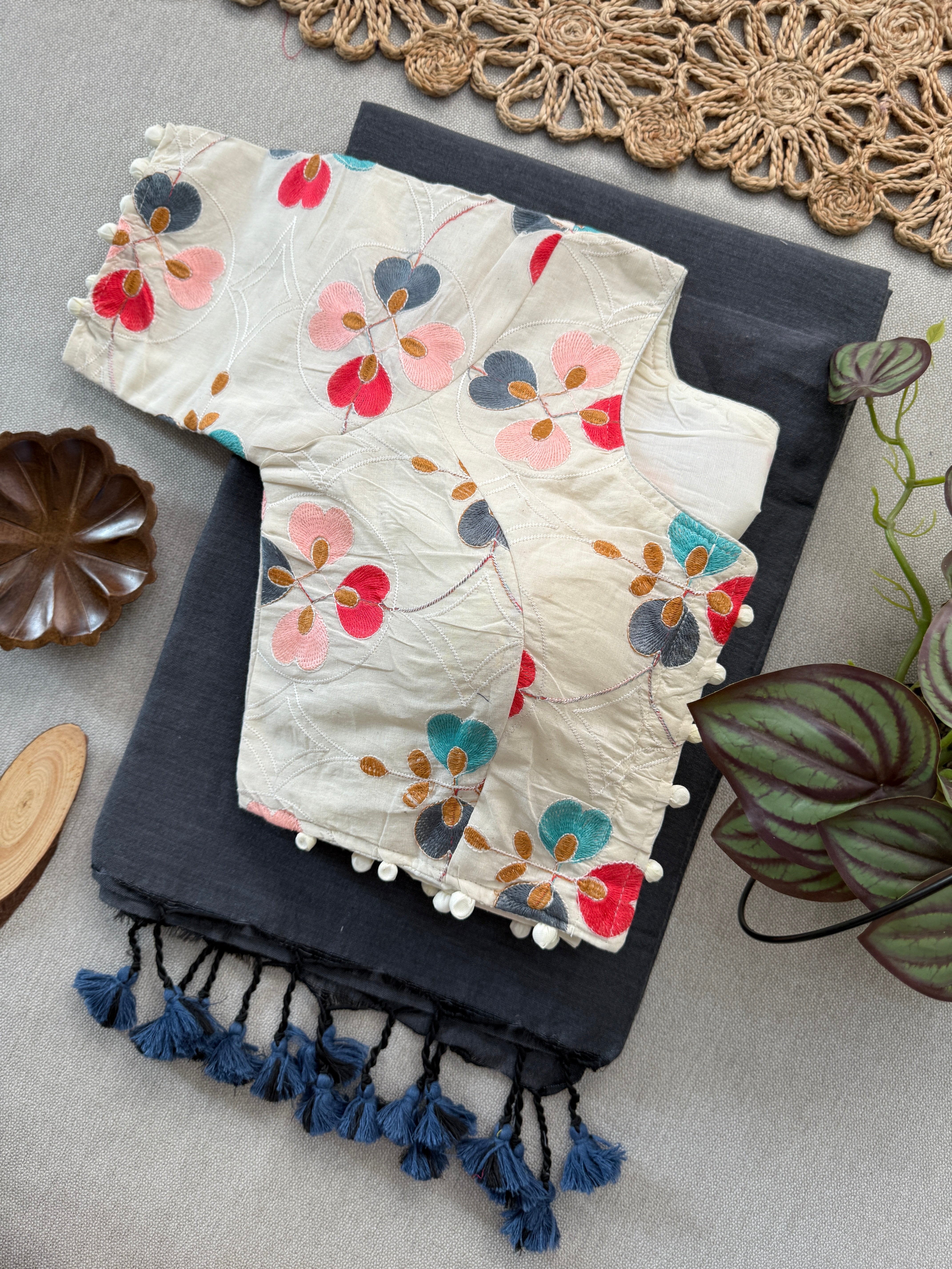 Our Handloom Saree is a classic blend of tradition and ease. The breathable fabric pairs seamlessly with a stitched blouse for a hassle-free ethnic style.
