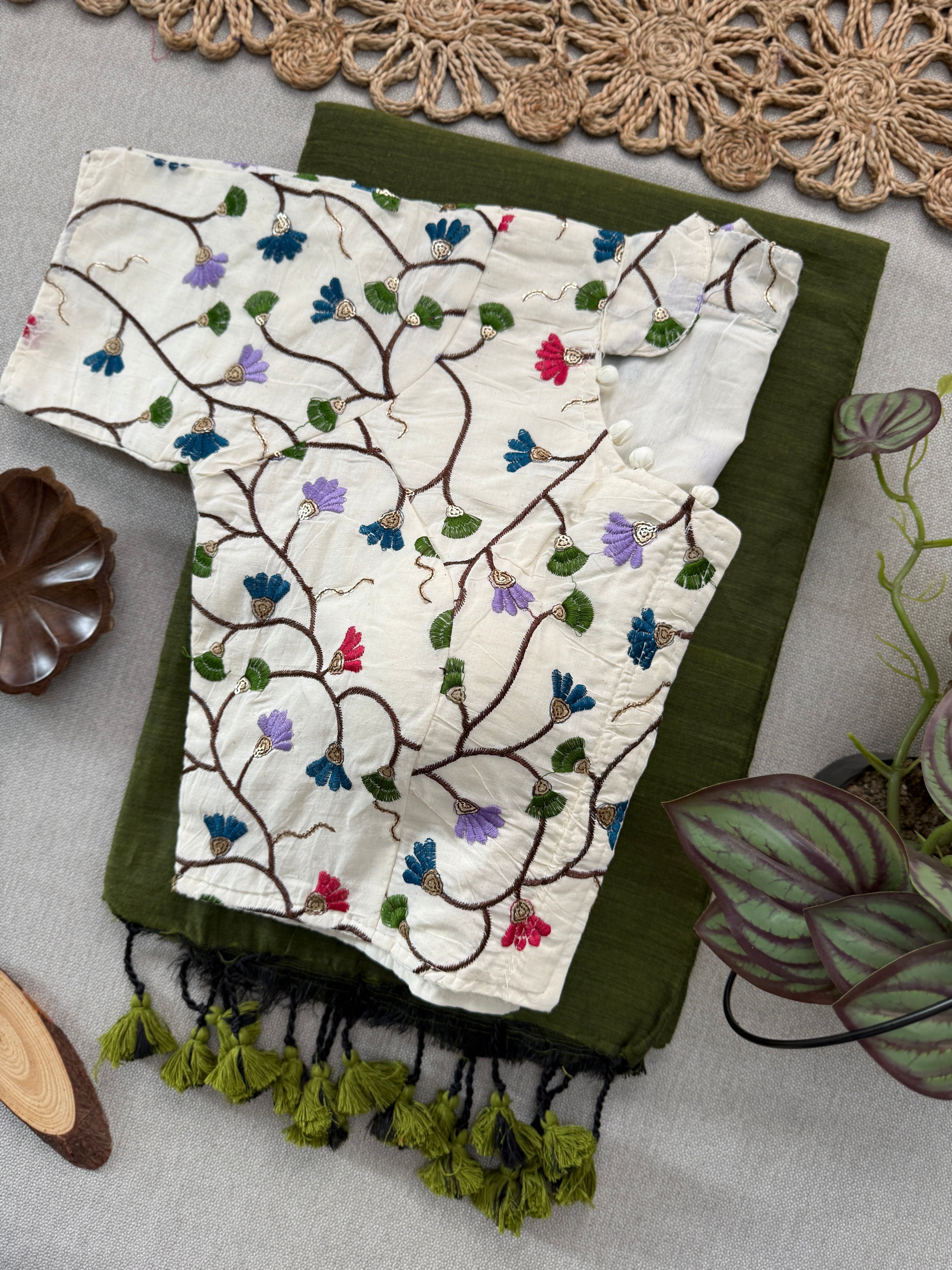 Celebrate tradition with this Khadi Cotton Saree featuring a fully stitched blouse. Woven from soft handloom cotton, it promises breathability and style. Perfect for everyday use as well as festive occasions, this saree combines heritage craftsmanship with modern convenience seamlessly.