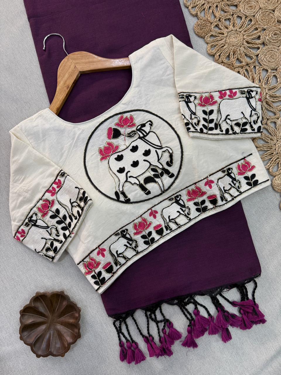 Classic handloom cotton saree with ready blouse that enhances your traditional style. Soft breathable fabric makes it perfect for all day comfort