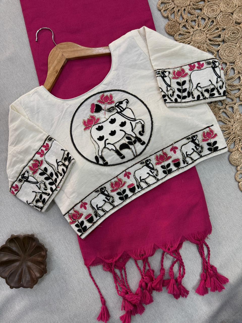 Premium handloom cotton saree with ready made blouse perfect for modern ethnic fashion. Ideal for casual wear and festive events.