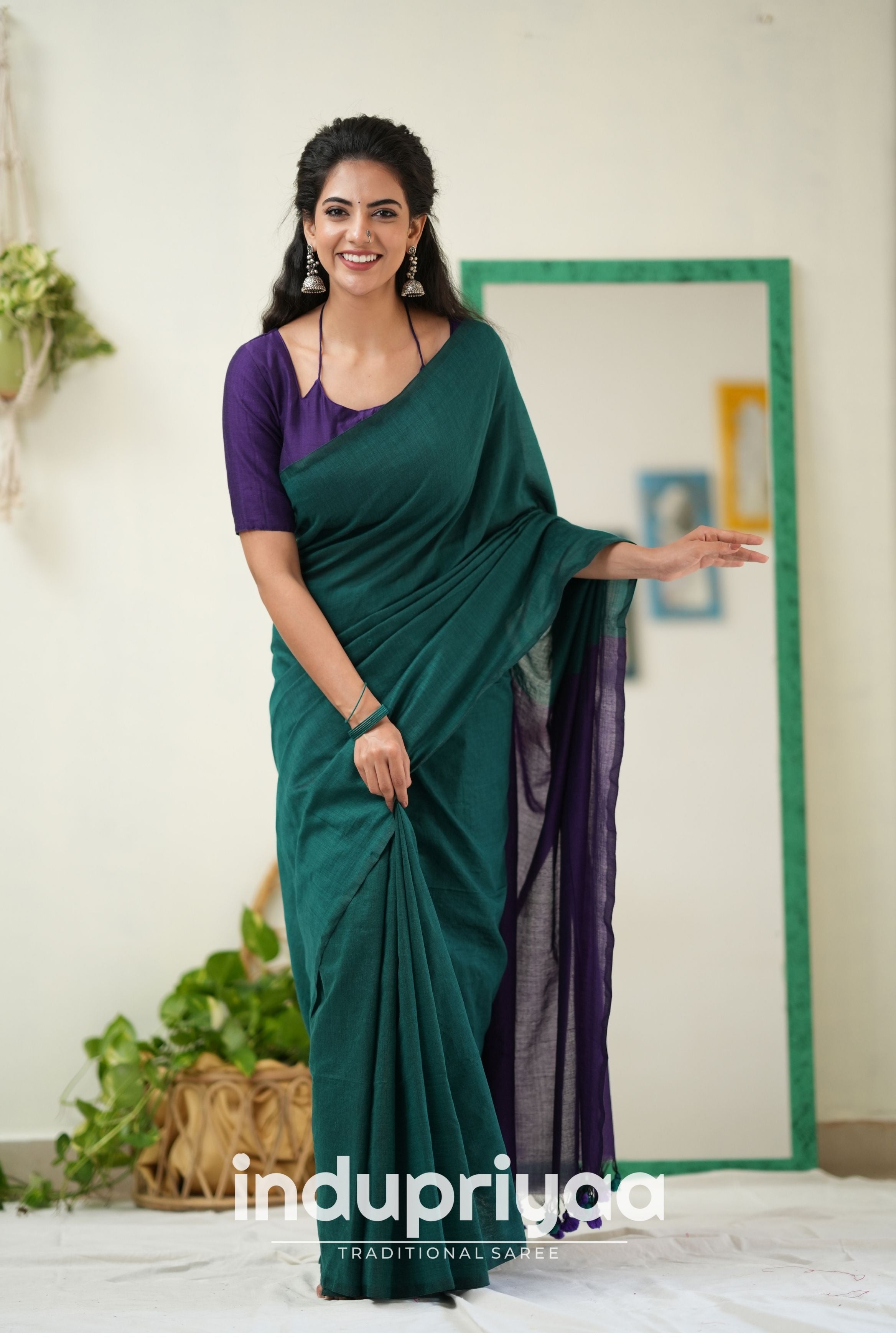 Rama Nd Purple Handloom Khadi Cotton Saree